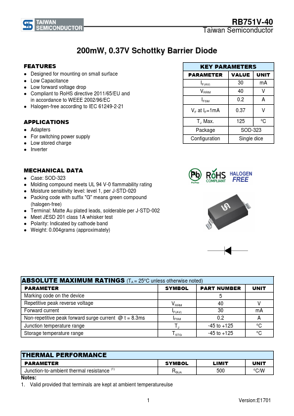 | Datasheet | RB751V-40-TaiwanSemiconductor.pdf |