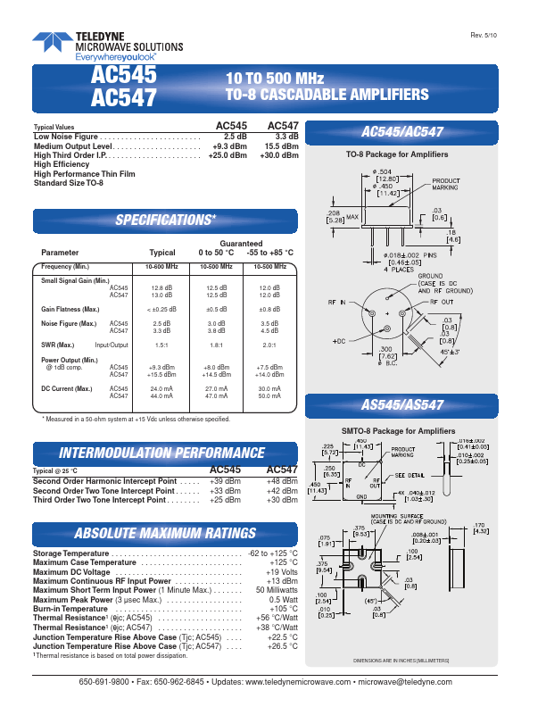 | Description | TO-8 CASCADABLE AMPLIFIERS |