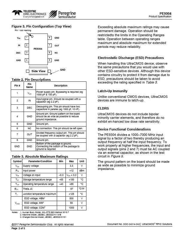 The PE9304 is a high-performance UltraCMOS® prescaler with a fixed divide ratio of 2. 7000 MHz.