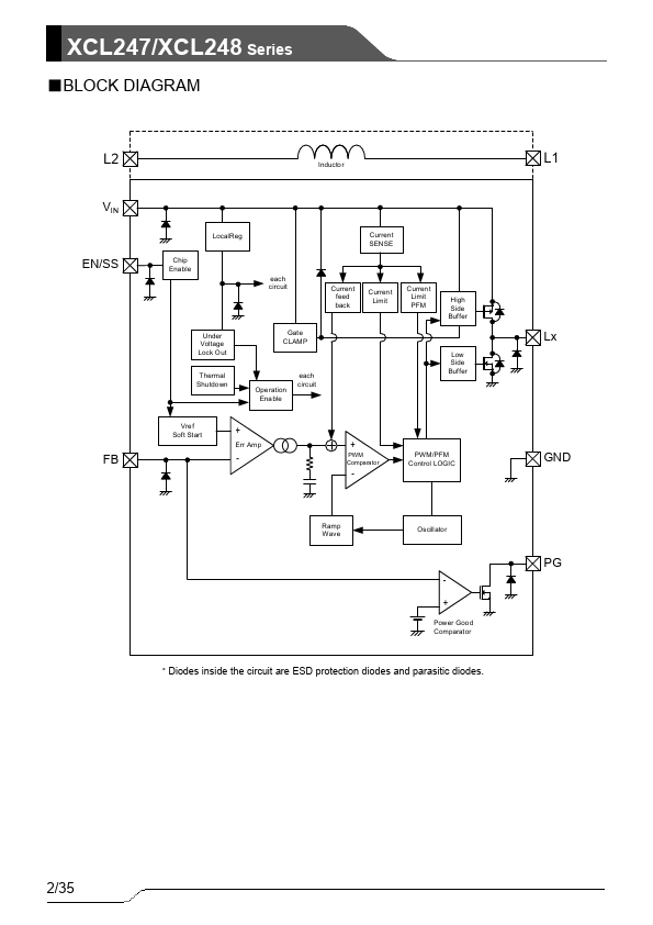 The XCL247/XCL248 Series is a small (3.0mm×3.0mm, h=1.7mm) 36V, 600mA step-down DC/DC converter with an integrated control IC and coil. Integrating the coil makes for easier circuit board layout and minimizes malfunction and noise from the ponent and wiring layout. The input voltage range is 3.0V to 36.0V, and the switching frequency is 1.2MHz, making it possible to supply a stable voltage with high efficiency.