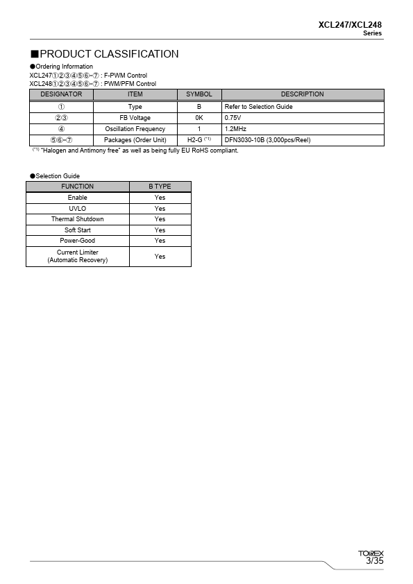 The XCL247/XCL248 Series is a small (3.0mm×3.0mm, h=1.7mm) 36V, 600mA step-down DC/DC converter with an integrated control IC and coil. Integrating the coil makes for easier circuit board layout and minimizes malfunction and noise from the ponent and wiring layout. The input voltage range is 3.0V to 36.0V, and the switching frequency is 1.2MHz, making it possible to supply a stable voltage with high efficiency.