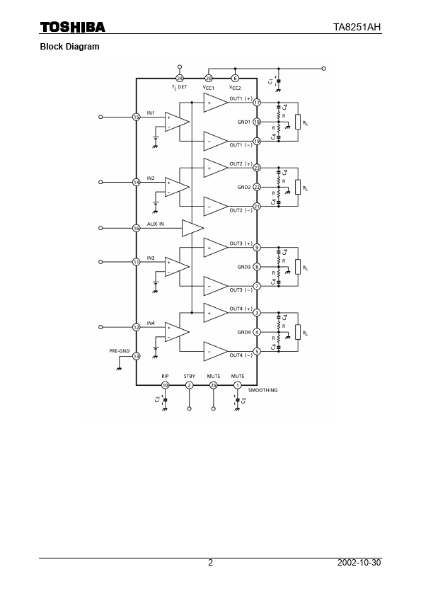 - Built-in AUX. amplifier from single input to 2 channels output (pin(16))