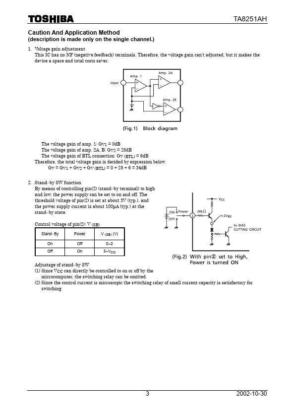 is made only on the single channel.) 1. Voltage gain adjustment This IC has no NF (negative feedback) terminals. Therefore, the voltage gain can’t adjusted, but it makes the device a space and total costs saver.