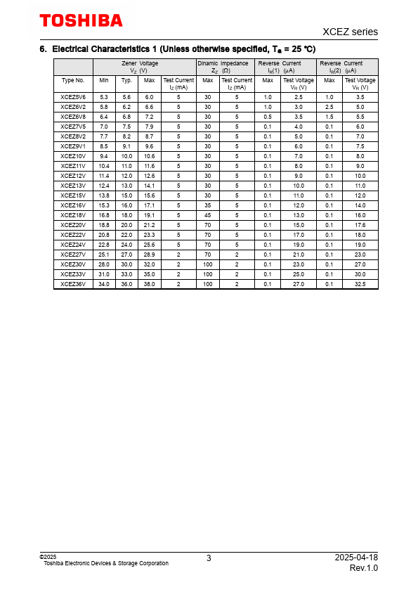 This datasheet PDF includes multiple part numbers: XCEZ6V8, XCEZ5V6. Please refer to the document for exact specifications by model. |