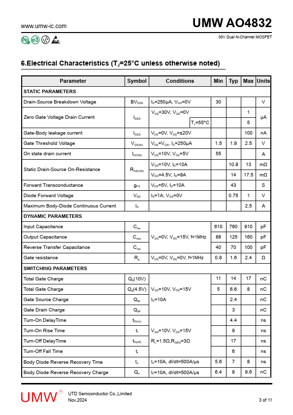 30V Dual N-Channel MOSFET