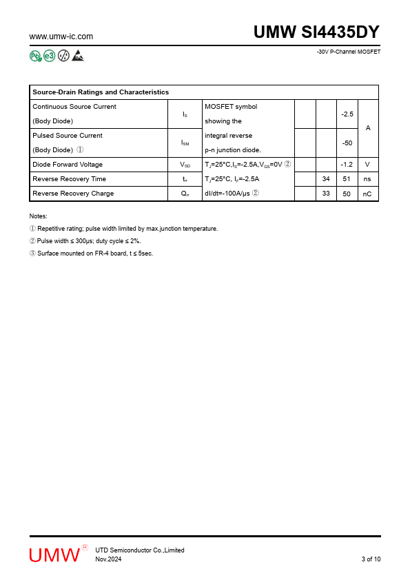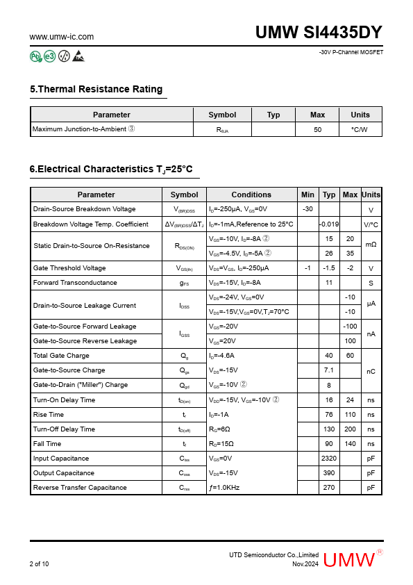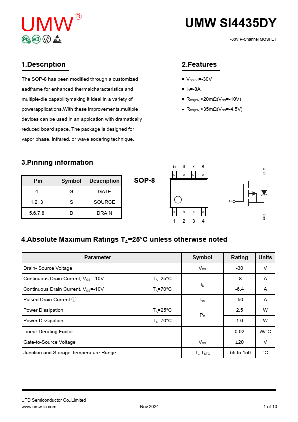 VDS (V)=-30V ID=-8A RDS(ON)<20mΩ(VGS=-10V) RDS(ON)<35mΩ(VGS=-4.5V)