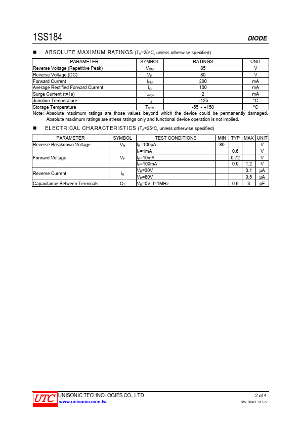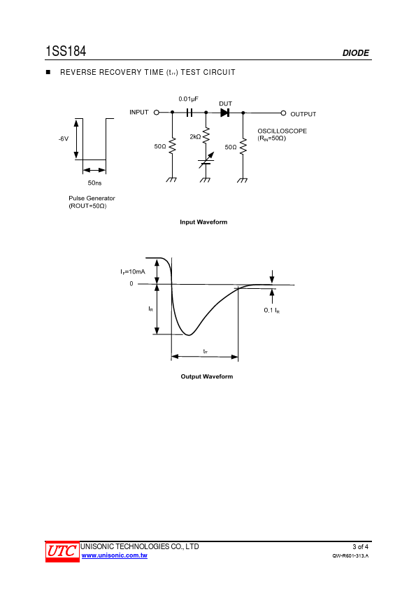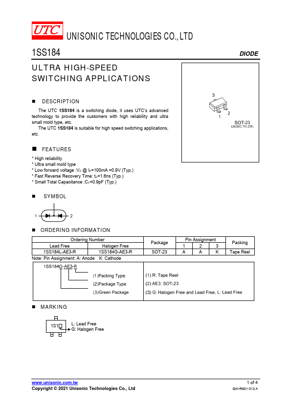 The UTC 1SS184 is a switching diode, it uses UTC’s advanced technology to provide the customers with high reliability and ultra small mold type, etc. The UTC 1SS184 is suitable for high speed switching applications, etc.