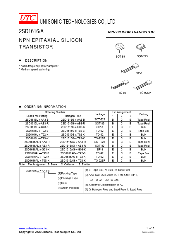 2SD1616 . For precise diagrams, and layout, please refer to the original PDF.