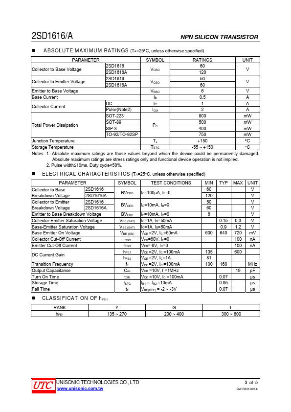 | 2SD1616 | NPN EPITAXIAL SILICON TRANSISTOR |