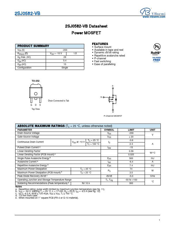 FEATURES • Surface mount • Available in tape and reel • Dynamic dV/dt rating • Repetitive avalanche rated • P-channel • Fast switching • Ease of paralleling
