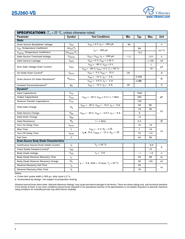 2SJ360-VB Datasheet P-Channel 60-V (D-S) MOSFET
