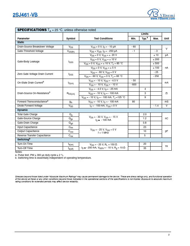• Trench Power MOSFET • High-Side Switching • Low On-Resistance: 3 • Low Threshold: - 2 V (typ.) • Fast Swtiching Speed: 20 ns (typ.) • Low Input Capacitance: 20 pF (typ.