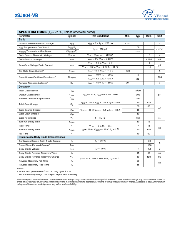 2SJ604-VB Datasheet P-Channel 60-V (D-S) MOSFET