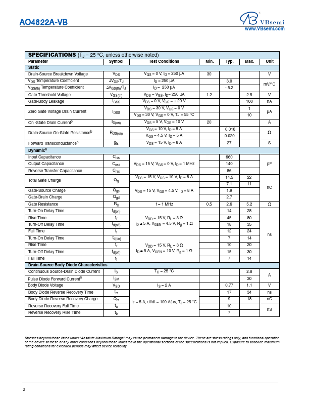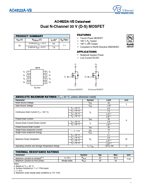 | AO4822A | 30V Dual N-channel MOSFET | Alpha & Omega Semiconductors |