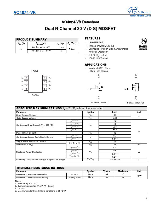AO4824-VB Datasheet