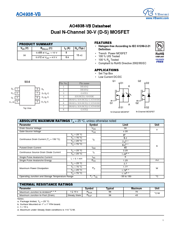 | AO4930 | 30V Dual N-Channel MOSFET |