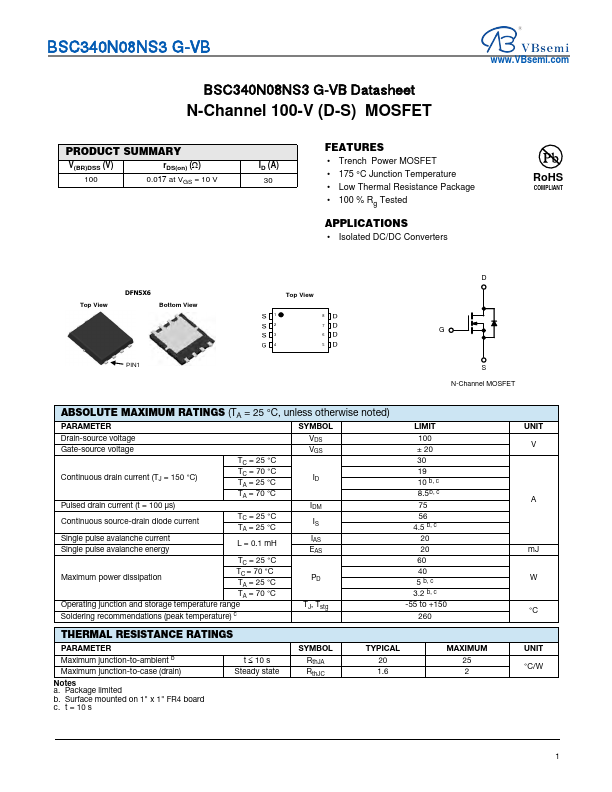 BSC340N08NS3 G-VB Datasheet