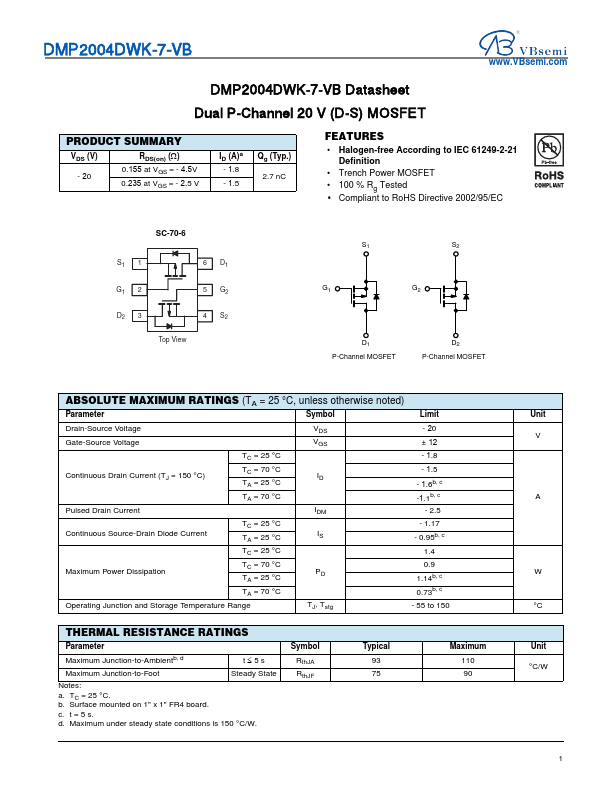 | DMP2004DWK | Dual P-Channel MOSFET | Kexin |