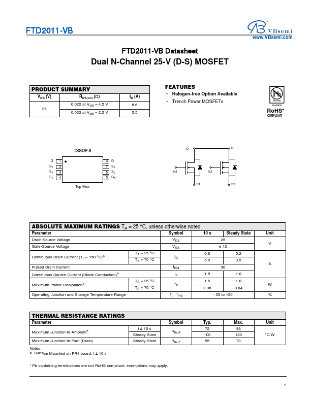 FEATURES • Halogen-free Option Available • Trench Power MOSFETs