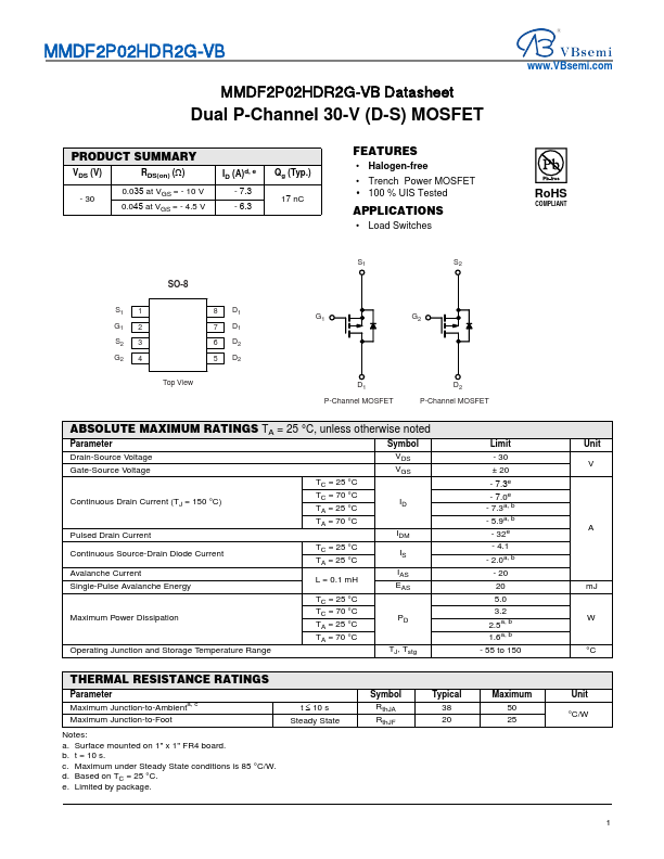 | Datasheet | MMDF2P02HDR2G-VBsemi.pdf |