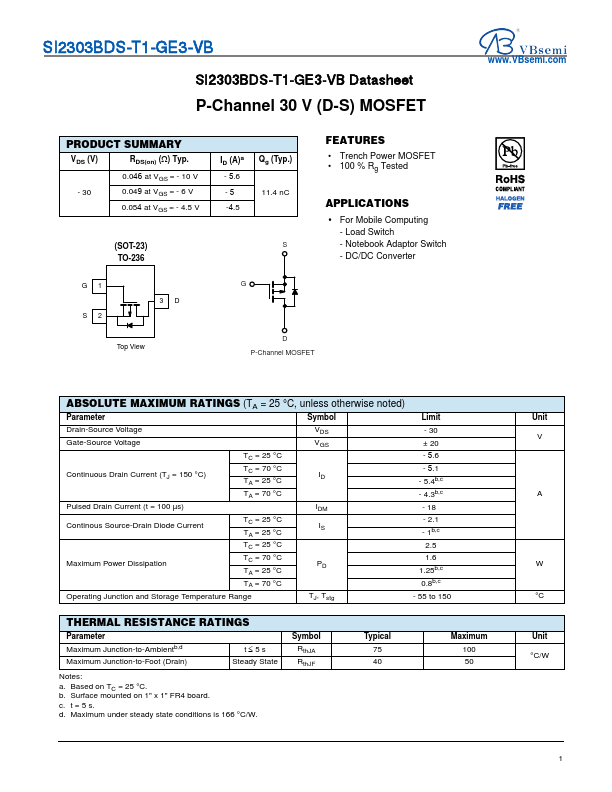 FEATURES • Trench Power MOSFET • 100 % Rg Tested
