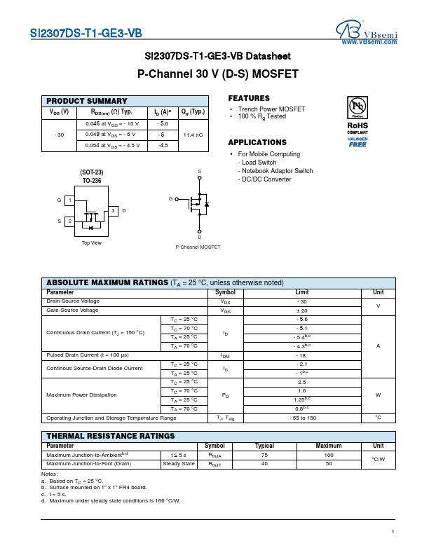 SI2307DS-T1-GE3-VB Datasheet