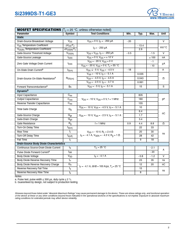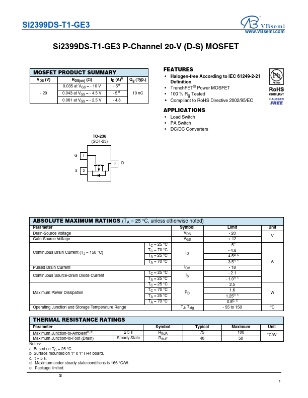 | SI2399DS | 20V P-Channel MOSFET | Vishay |
