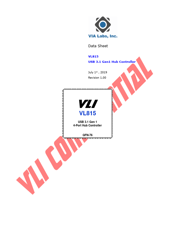 - Power and Package - Requires 3.3V and 1.1V Inputs - 25MHz Xtal - Integrated Voltage Regulators Generate All Required Voltages from 5V Input 5V to 1.1V Switching DC-DC Regulator 5V to 3.3V LDO Regulator - QFN 76L green package (9x9x0.85 mm) -4- VL815 System Overview