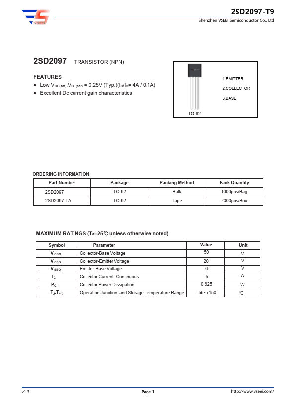 2SD2097-T9 Shenzhen VSEEI Semiconductor Co., Ltd 2SD2097 TRANSISTOR.