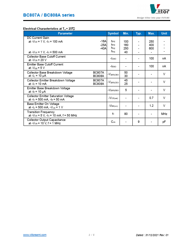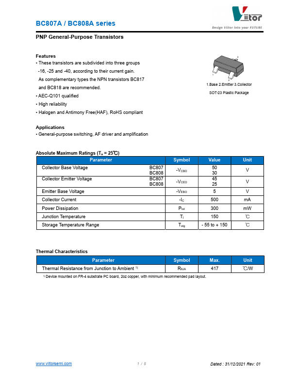 Overview: BC807A / BC808A series PNP General-Purpose Transistors.