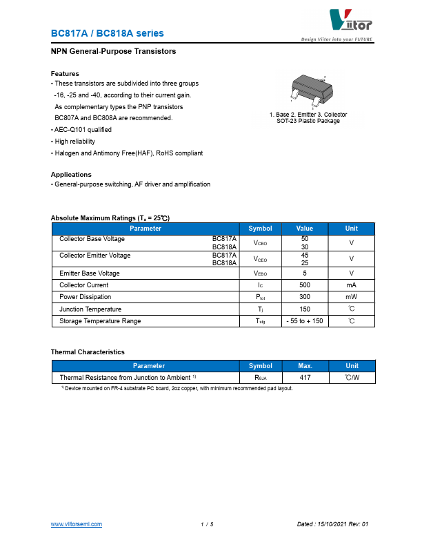 | Datasheet | BC817A-Viitor.pdf |