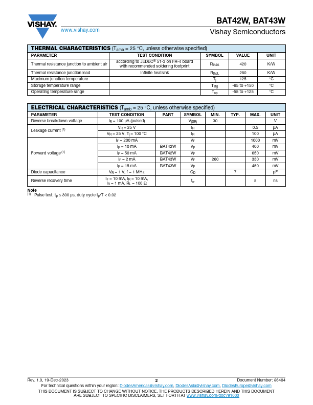 | Datasheet | BAT43W BAT42W Datasheet (PDF) |