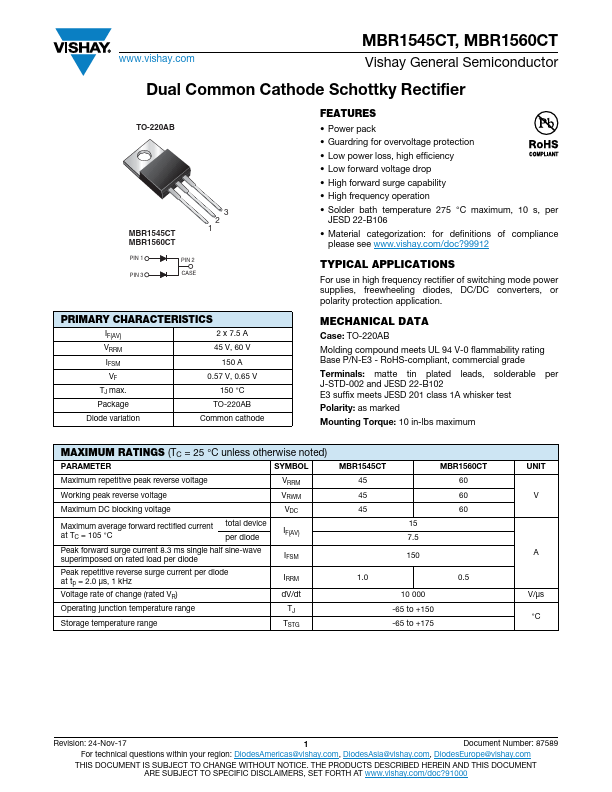 - RoHS-pliant, mercial grade Terminals: matte tin plated leads, solderable per J-STD-002 and JESD 22-B102 E3 suffix meets JESD 201 class 1A whisker test Polarity