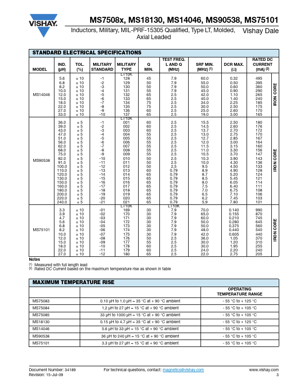 This page provides the datasheet information for the MS75085, a member of the MS75083 Inductors family.