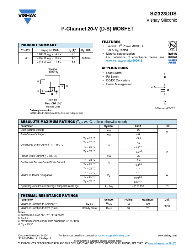 Ordering Information: Si2323DDS-T1-GE3 (Lead (Pb)-free and Halogen-free)