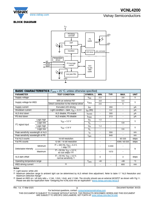 VCNL4200 integrates a high sensitivity long distance proximity sensor (PS), ambient light sensor (ALS), and 940 nm IRED into one small package.