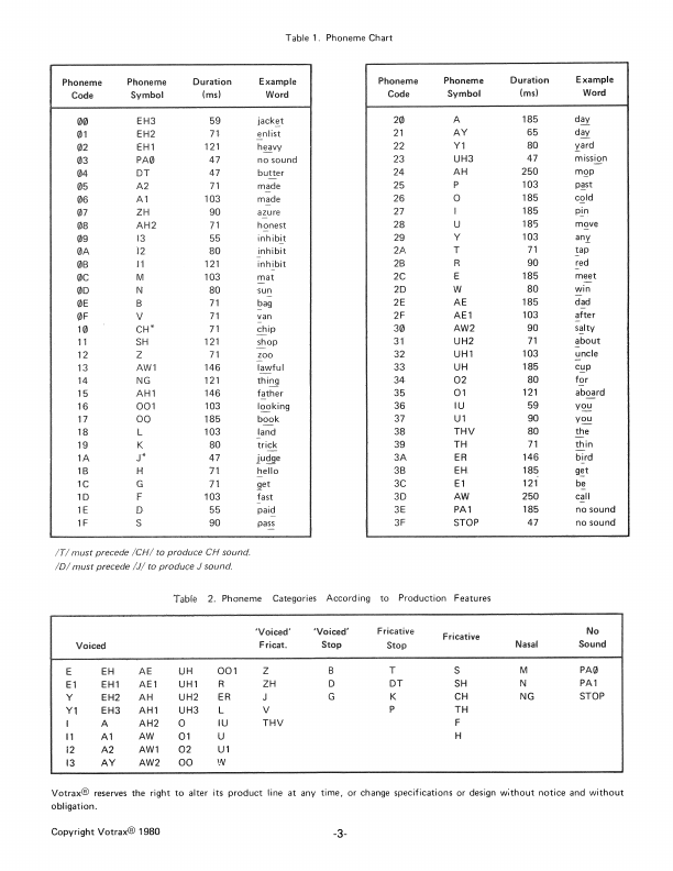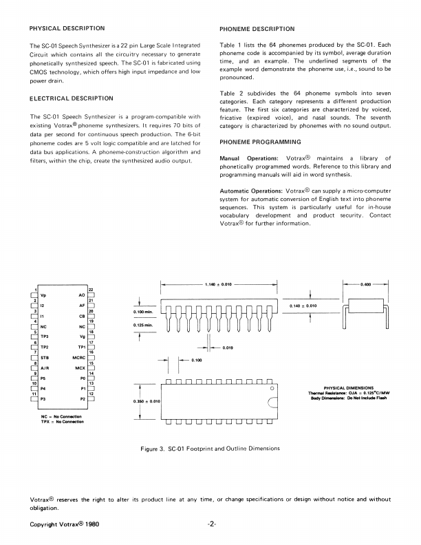 | Description | Votrax CMOS Phoneme Speech Synthesizer |