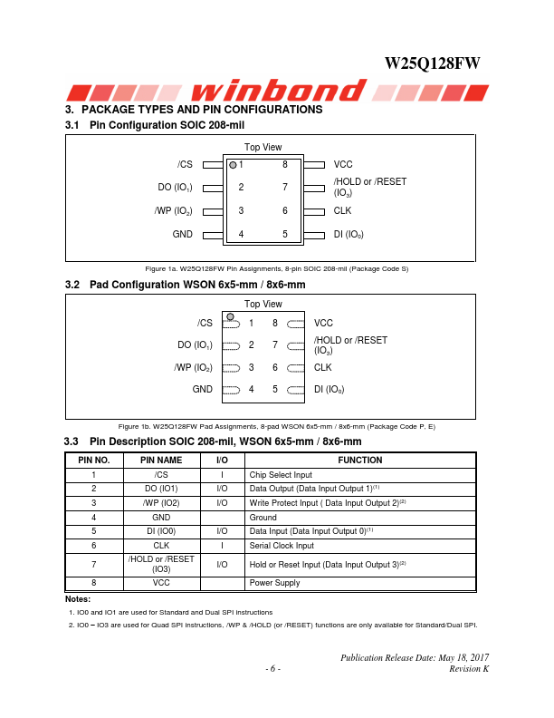 - Dual SPI: CLK, /CS, IO0, IO1, /WP, /Hold