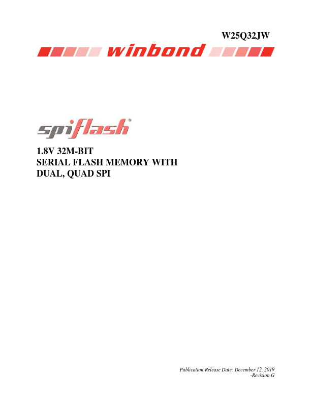 - New Family of SpiFlash Memories - W25Q32JW: 32M-bit / 4M-byte - Standard SPI: CLK, /CS, DI, DO - Dual SPI: CLK, /CS, IO0, IO1, - Quad SPI: CLK, /CS, IO0, IO1, IO2, IO3 - Software & Hardware Reset(1)