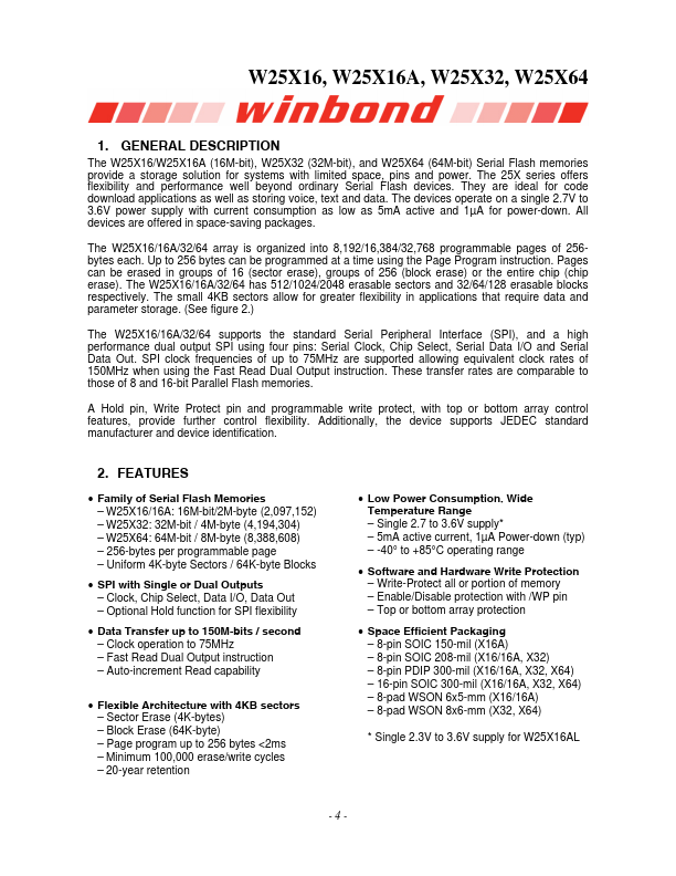 - W25X32: 32M-bit / 4M-byte (4,194,304)