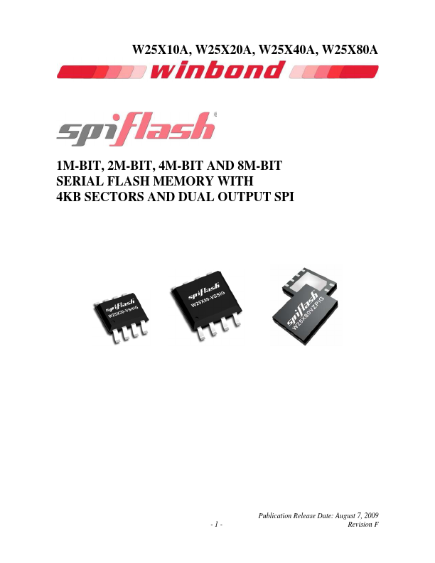 The W25X10A (1M-bit), W25X20A (2M-bit), W25X40A (4M-bit) and W25X80A (8M-bit) Serial Flash memories provide a storage solution for systems with limited space, pins and power. The 25X series offers flexibility and performance well beyond ordinary Serial Flash devices.