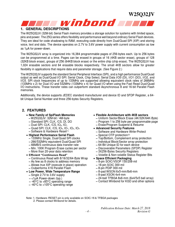 - W25Q32JV: 32M-bit / 4M-byte