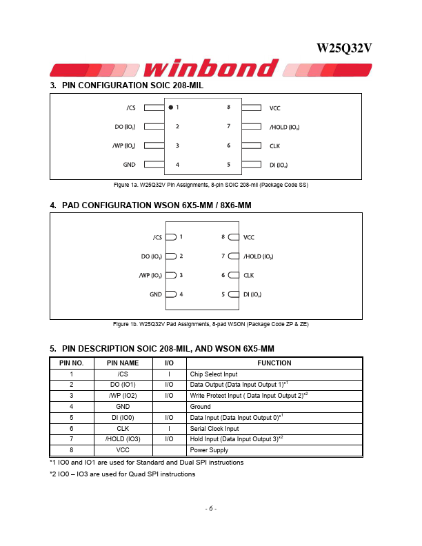 - Dual SPI: CLK, /CS, IO0, IO1, /WP, /Hold