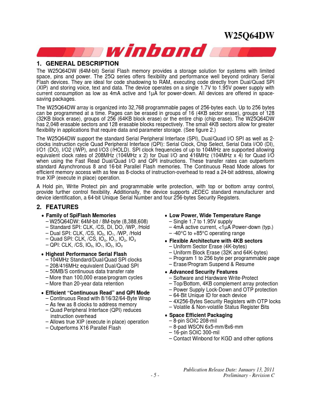 W25Q64DW Key Features