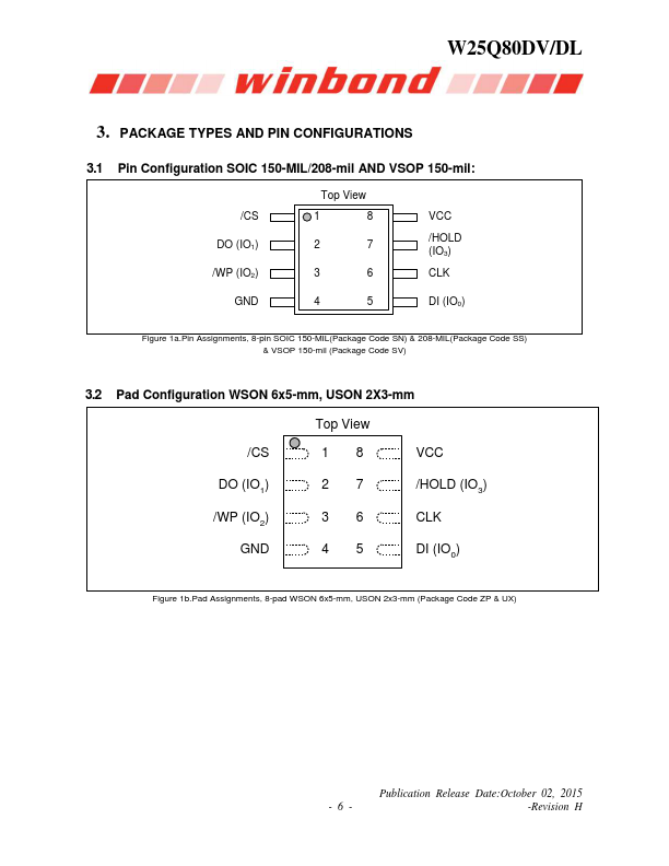 The W25Q80DV/DL (8M-bit) Serial Flash memory provides a storage solution for systems with limited space, pins and power. The 25Q series offers flexibility and performance well beyond ordinary Serial Flash devices. They are ideal for code shadowing to RAM, executing code directly from Dual/Quad SPI (XIP) and storing voice, text and data.