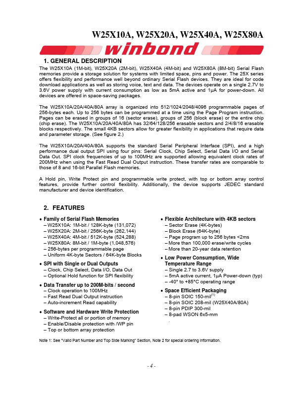 - W25X40A: 4M-bit / 512K-byte (524,288)
