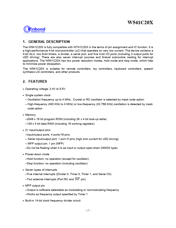 The W541C20X is fully patible with W741C20X in the terms of pin assignment and IC functon.