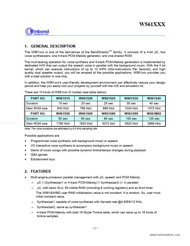 - 8-level STACK shared by CALL, Timer, Synthesizer and TG Publication Release Date: June 3, 2003