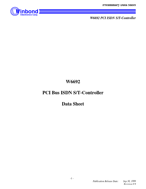 W6692 PCI ISDN S/T-Controller The Winbond's single chip PCI bus ISDN S/T interface controller (W6692) is an all-in-one device suitable for ISDN Internet access.