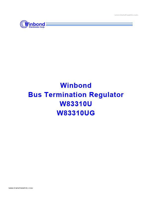 The W83310U is a linear regulator which provides achieves continuous 2.0 Amp bi-directional sinking and driving capability for DDR SDRAM bus terminator application. The chip simply implement a stable power supply which can track half of input power dynamically for bus terminator with a single chip; that is the chip integrates two power MOSFETs.